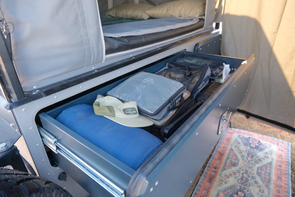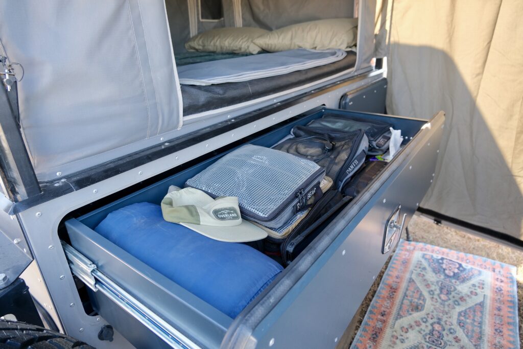 Despite its svelte profile, the trailer is packed with all the essentials. The BunduTRAIL in its base configuration comes with a fridge drawer, 18-gallon freshwater tank and powered tap, a swing out spare tire carrier, privacy enclosure, 360-degree swing out awning, and a 105 AH lithium battery powered by a 308W solar panel connected to a Victron controller. For comfort on the trails, the trailer comes with a 4″ mattress and four 12-volt fans to keep you comfortable. The base model comes in at $31,250 and there are a number of quality-of-life add-ons available to fit it out further.