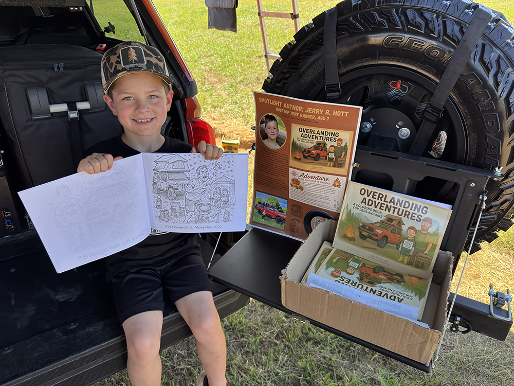 We had the pleasure of meeting Jerry Hott, “the roof top ranger” at Overland Expo East. Jerry is a seven-year-old overlanding enthusiast who has done an impressive list of trails with his dad since falling in love with overlanding at the age of four after seeing a YouTube video. His adventures in the family’s bright orange Tacoma nicknamed “HOTTACO” have inspired the young entrepreneur to write a coloring book celebrating the memories and adventures he’s experienced while out on the trail. The coloring book features some impressive art that captures both the highs and lows of life on the trail. Jerry’s favorite page in his book reminisces on a particularly challenging mosquito encounter at camp and aptly captures the feeling of being there. It was a joy talking with Jerry and getting to look through his book with him. There seemed to be a lot of people walking around with Jerry’s coloring books that weekend. If you weren’t lucky enough to come home with one, you can get a hold of one here and join in on the coloring fun.