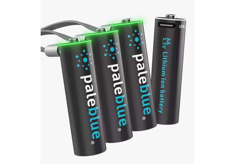 Pale Blue is the battery company that wants you to buy fewer batteries. Pale Blue offers the world’s best lithium polymer rechargeable batteries to ditch disposables for good. Each battery is feature-rich with a mirco USB charging ports, LED charging indicators, are 40% lighter than traditional batteries, and have incredible charging speed. Available in AA, AAA, 9V, and D batteries.
