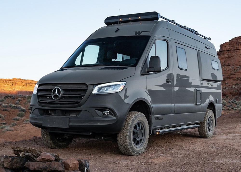 The Winnebago Revel is built for travelers who view every mile as an opportunity for discovery. Designed on the proven Mercedes-Benz AWD Sprinter chassis, the Revel blends rugged capability with refined performance, delivering confidence across highways, dirt roads, and remote landscapes. Its high-output turbo-diesel engine, paired with a responsive 9-speed automatic transmission, provides smooth power delivery, efficiency, and stability. Measuring approximately 19 feet 7 inches in length with a 144-inch wheelbase, the Revel maintains an agile driving profile without sacrificing durability or interior functionality. This balance of maneuverability and strength defines the Revel as a true adventure platform—purpose-built for explorers who demand versatility from their vehicle.