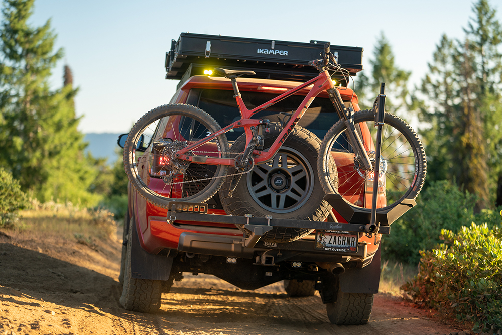 As UltraSwing gained traction for its ability to carry a spare and bikes, a tougher question emerged: Which bike rack truly belonged on the back of an off-road rig? The prevailing industry method used dual arms to clamp tires—fine on smooth highways, sketchy when elevation and temperature radically change that initial tire PSI. RiG’d decided to tackle the bike rack itself.