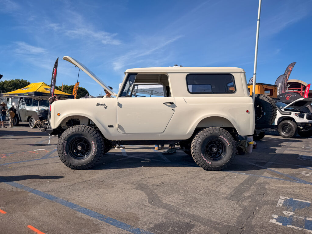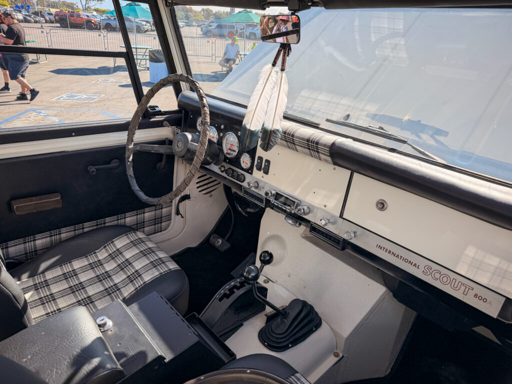 The International Harvester Scout 800B built by High Desert Scouts is a standout restomod that blends vintage character with modern performance. Under the hood, an LS3 motor swap brings serious power, complemented by upgrades like power steering, power brakes, and air conditioning for everyday drivability. The build stays true to its roots with original emblems, while adding capability through Bilstein suspension, General Tires, and front and rear e-lockers. Inside, it features Corbeau seats with custom upholstery, updated interior vents, Autometer gauges, and a B&M shifter, all tied together with modern tech and LED lighting. It is a thoughtfully executed build that respects the Scout’s heritage while elevating it for today’s adventures.