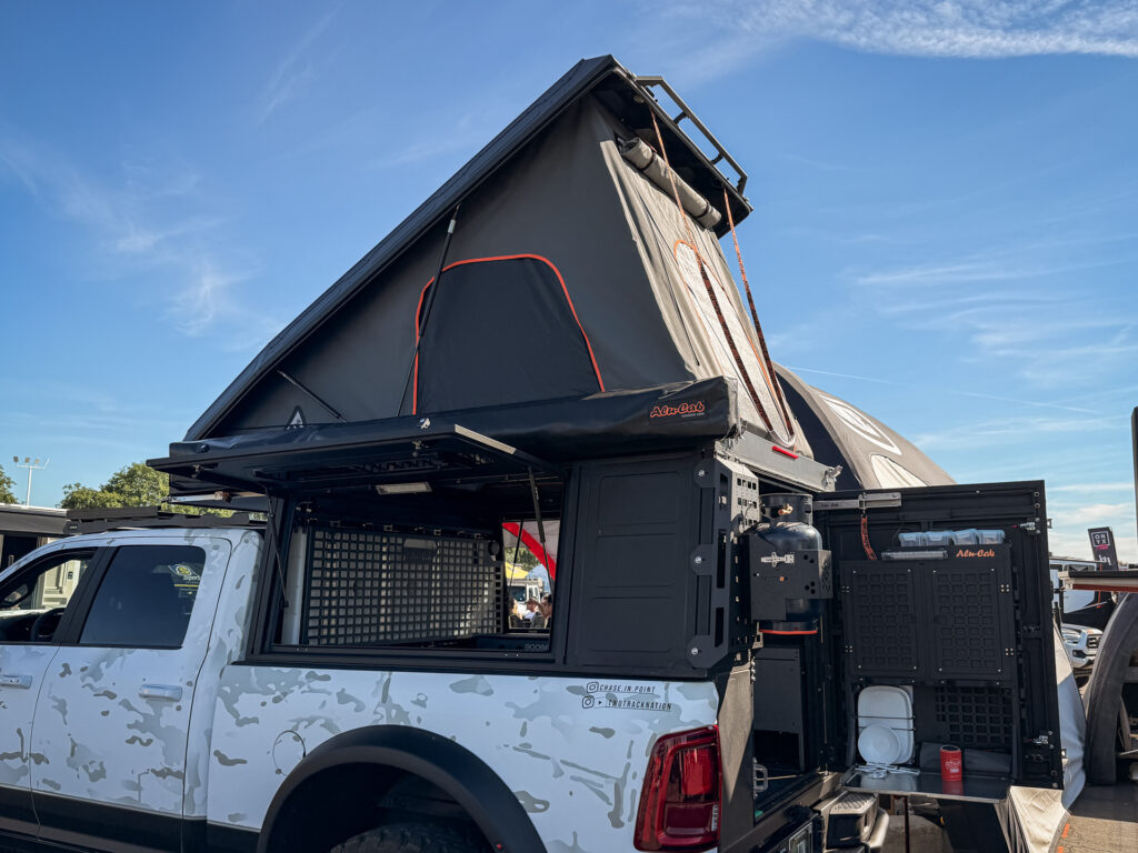 Chivas Sotelo’s 2026 Ford F350 SuperCab stood out with a clean, functional setup centered around a Bowen Customs flatbed, finished in a color-matched paint scheme with black rear fenders to mirror the front flares and create a balanced, cohesive look. Topped with a Four Wheel Campers Hawk+ camper, the build is ready for extended travel while maintaining a streamlined profile.