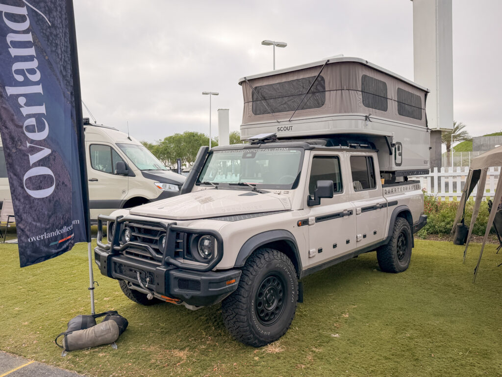 Scott Brady’s Ineos Grenadier Quartermaster, showcased in The Overland Collective booth, stood out for its clean, purpose-built approach paired with a Scout Yoho pop-up camper. Outfitted primarily with factory upgrades, including the snorkel, steel bumpers, integrated winch, and BFG tires, the build leans into capability without unnecessary complexity. A roof-mounted Starlink setup allows Scott to stay connected and work from virtually anywhere, reinforcing the rig’s real-world usability. To support the added load of the camper, he upgraded to Eibach heavy-duty rear springs, increasing capacity by roughly 500 pounds over stock. True to form, the entire setup reflects a less-is-more philosophy, keeping weight down while maximizing efficiency and function for extended travel.