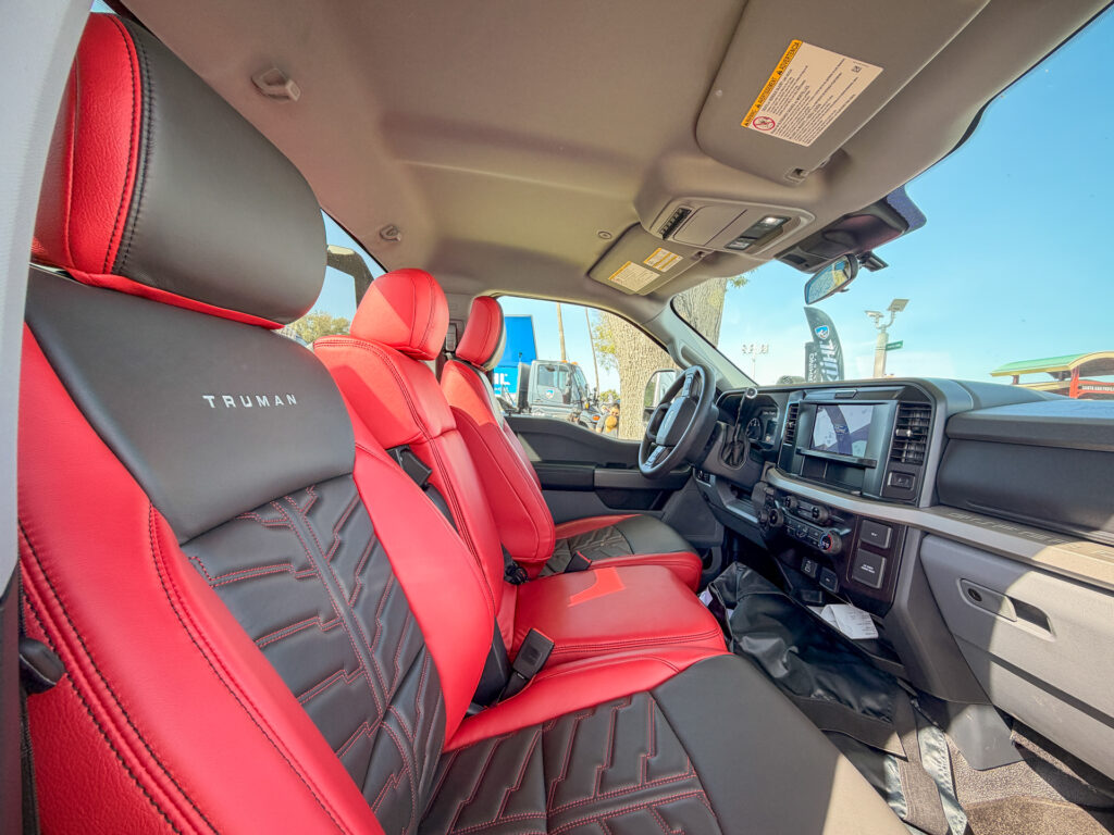 Truman Motors’ “The Shorty” is a wild reimagining of a heavy-duty platform, turning a 2026 Ford F-450 XLT into a compact, no-compromise rig. Powered by the 7.3L V8 “Godzilla” engine, the build features a bespoke 122-inch wheelbase paired with a Truman Super Single conversion, giving it a noticeably tighter, more agile stance than you would expect from a truck of this size. A mil-spec suspension with a 2-inch lift and HD Fox 2.5 shocks at all four corners works with massive 44-inch equivalent 365/80R20 tires on DOT-certified 20-inch wheels to deliver serious off-road capability.