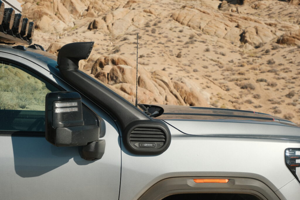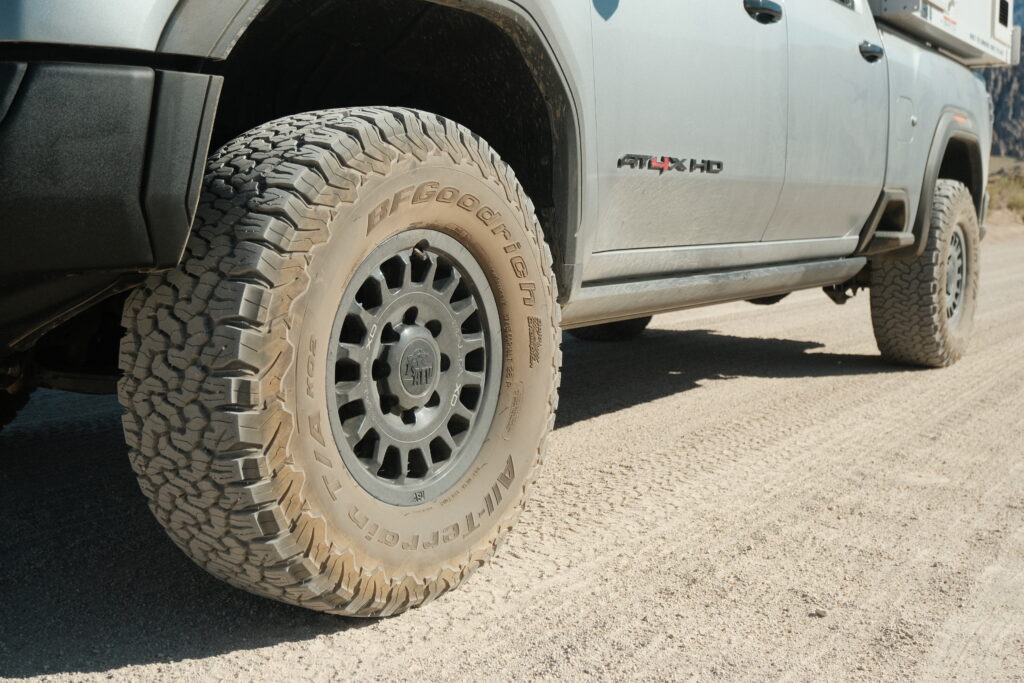 As I left pavement behind and turned onto the dusty tracks that trail through the Alabama Hills, the Sierra handled the loose terrain with ease. The AEV-tuned suspension absorbed washboard chatter, while the K02 tires kept the truck planted on course. I found a quiet spot to camp, tucked among boulders, with Mount Whitney rising in the distance.